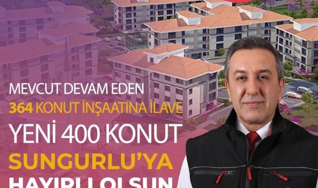 Çorum'un Sungurlu ilçesinde yapımı devam eden 364 konuta ilave yapılacak 300 konut sayısı, yapılan girişimlerle 400'e çıkartıldı. Konuyla ilgili açıklama yapan Belediye Başkanı Muhsin Dere, "İnşaatı devam eden konutlarla birlikte 764 TOKİ konutuyla İlçemizin konut ihtiyacının karşılanması hususunda önemli bir adım atılmış olacak" dedi.