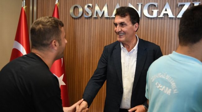 Bursa'da Osmangazi Belediye Başkanı Mustafa Dündar, Kurban Bayramı öncesi son iş gününde belediye personeli ile tek tek bayramlaştı.