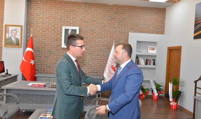 Ezine Belediye Başkanı Güray Yüksel, ilçeye yeni atanan Kaymakam Yusuf Kaptanoğlu'na hayırlı olsun ziyaretinde bulunarak, görevinde başarılar diledi.