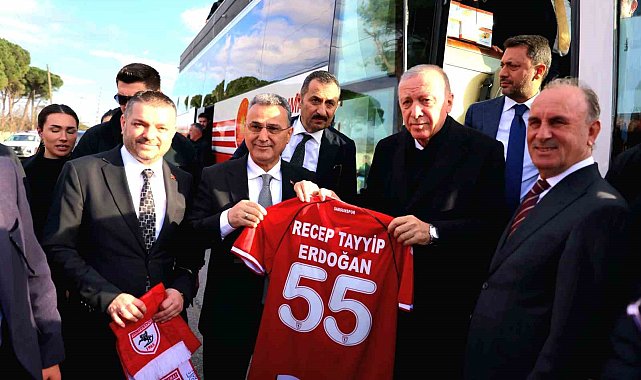 Samsun'un İlkadım Belediye Başkanı İhsan Kurnaz, Cumhurbaşkanı Recep Tayyip Erdoğan'a isminin yazılı olduğu 55 numaralı Samsunspor forması hediye etti.