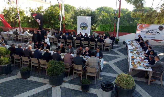 Bozdoğan'da Muhtarlar Günü dolayısıyla düzenlenen çelenk töreninin ardından Bozdoğan Belediye Başkanı Mustafa Galip Özel, muhtarlarla kahvaltı programında bir araya geldi.