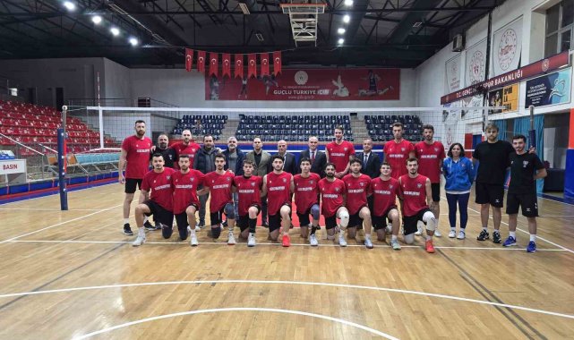 Düzce Belediye Başkanı Faruk Özlü, Türkiye Voleybol Federasyonu (TVF) Erkekler 1. Ligi'nde mücadele eden Düzce Belediyesi Spor Akademisi Voleybol Takımı'nın antrenmanına katıldı. Özlü, voleybol takımı oyuncularını Fenerbahçe SK galibiyetinden dolayı tebrik ederek baklava ikramında da bulundu.Düzce Belediyesi Spor Akademisi Voleybol Takımı, TVF 1. liginde geçtiğimiz hafta mücadele ettiği Fenerbahçe SK Voleybol Takımı'nı 3-0 mağlup etti. Galibiyetin ardından kısa bir tatil yapan voleybol takımı oyuncuları, Düzce'ye döner dönmez 18 Temmuz Spor Salonu'nda antrenmanlarına başladı. Düzce Belediye Başkanı Faruk Özlü'de tatil dönüşü ilk antrenmanda voleybolcuları ziyaret ederek hem Fenerbahçe galibiyetini kutladı hemde baklava ikram etti.Düzce'nin spor şehri olması için çalıştıklarını ifade eden Başkan Faruk Özlü, "Spor Şehri Düzce bizim önemli bir hedefimizdi. Bu hedefi gerçekleştirmek için salon sporlarına ağırlık veriyoruz. Voleybol takımımız son derece başarılı. Biliyorsunuz 1. ligdeyiz. Bu sezon inşallah üst sıralarda sezonu tamamlamaya çalışacağız. Değer veren, kıymet veren, destek veren tüm arkadaşlarımıza başarılar diliyorum. Takımımıza da başarılar diliyorum" dedi.