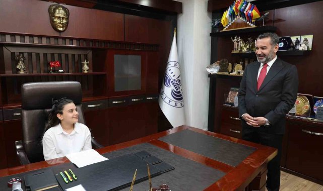 Elazığ Belediye Başkanı Şahin Şerifoğulları, 23 Nisan Ulusal Egemenlik ve Çocuk Bayramı etkinlikleri kapsamında koltuğunu, 4. sınıf öğrencisi Zehra Betül Duzcu'ya devretti.