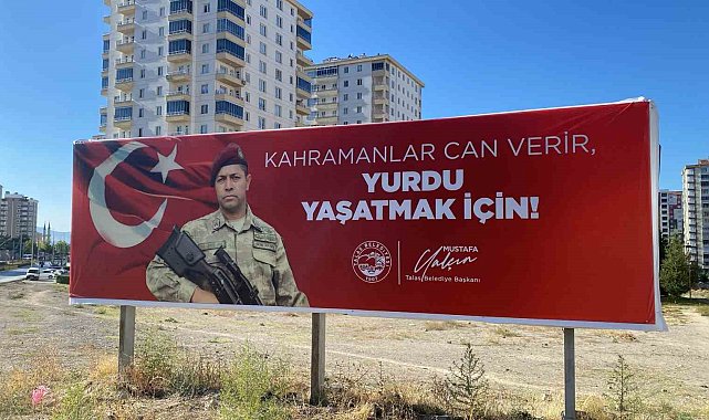 Talas Belediye Başkanı Mustafa Yalçın, FETÖ elebaşı Fethullah Gülen'in ölümünden duyduğu mutluluğu, açık hava görsellerine 15 Temmuz şehidi Ömer Halisdemir'in fotoğraflarını girerek yansıttı.Başta 15 Temmuz kalkışması olmak üzere birçok kez devlete ve millete ihanet eden FETÖ elebaşının vefatı tüm yurtta olduğu gibi Talas'ta da coşkuyla karşılandı. Birçok kişi yaşadığı sevinci, başta sosyal medya hesapları olmak üzere çeşitli yollarla dile getirirken, Talas Belediye Başkanı Mustafa Yalçın da ilçedeki açık hava mecralarını değerlendirdi. Totem ve billboardlara 15 Temmuz şehidi, kahraman astsubay Ömer Halisdemir'in fotoğraflarını giren Başkan Yalçın, 'Kahramanlar Can Verir, Vatanı Yaşatmak İçin' sözlerine de yer verdi.Başkan Yalçın'ın bu anlamlı hareketi, vatandaşlar tarafından da takdirle karşılandı.