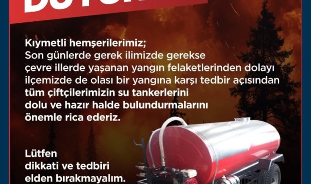Germencik Belediye Başkanı Burak Zencirci yaz aylarında artan orman yangınlarına karşı vatandaşlara önemli bir çağrıda bulanarak su tankeri olan çiftçilerin tankerlerini dolu ve hazır halde bulundurmalarını istedi.