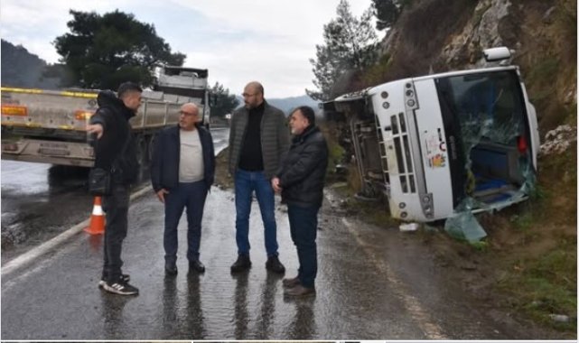 Germencik Belediye Başkanı Burak Zencirci sabah saatlerinde Ortaklar-Çamlık Karayolu'nda festivale giden yolcuları taşıyan minibüsün devrilmesi sonucu 23 kişinin yaralandığı kaza sonrası olay yerinde incelemelerde bulunurken, sosyal medya hesabından yaptığı paylaşımla yaralılara geçmiş olsun dileklerini iletti.Aydın'ın Didim ilçesinden İzmir'in Karaburun ilçesindeki Nergis Festivali'ne giden yolcuları taşıyan N.Ç. idaresindeki 48 ALZ 167 plakalı tur minibüsü Ortaklar-Çamlık yolu üzerinde yağış nedeniyle kayganlaşan yolda sürücüsünün direksiyon hakimiyetini kaybetmesi sonucu yol kenarındaki şarampole devrildi. Kaza ihbarı üzerine bölgeye çok sayıda ambulans, itfaiye ve jandarma ekipleri sevk edildi. Kazada minibüs bulunan 23 kişi yaralanırken, yaralılar ambulanslarla çevredeki hastanelere kaldırılarak tedavi altına alındı.Meydana gelen kazanın ardından Germencik Belediye Başkanı Burak Zencirci de olay yerine gelerek incelemelerde bulundu. Başkan Zencirci sosyal medya hesabından yaptığı paylaşımda, "Ortaklar-Çamlık karayolunda meydana gelen kaza yüreğimizi ağzımıza getirdi. Facianın eşiğinden döndük. Tüm vatandaşlarımıza tekrardan geçmiş olsun dileklerimi sunuyorum" ifadelerine yer verdi.