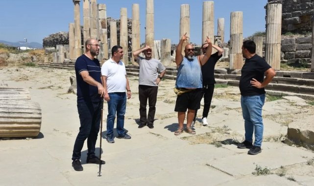 Germencik Belediye Başkanı Burak Zencirci, Magnesia Antik Kenti'ni ziyaret ederek yürütülen çalışmalar hakkında arkeologlardan bilgi aldı.