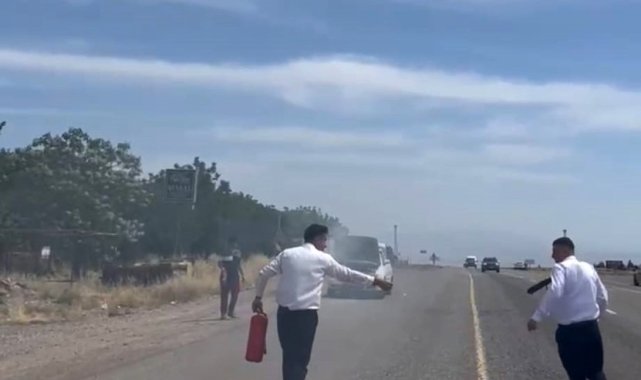 Batman'da seyir halindeki otomobilin motor kısmında çıkan yangına yolcu otobüsü şoförleri müdahale ederek söndürdü.