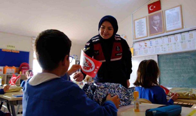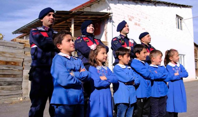 Bayburt'un merkeze bağlı Uğrak köyündeki 7 öğrencili ilkokulun renksiz duvarı, 29 Ekim Cumhuriyet Bayramı'nda şanlı Türk bayrağıyla renklendirildi. Milli Eğitim Müdürlüğü ile İl Jandarma Komutanlığı ekiplerinin ortaklaşa düzenlediği etkinlikte öğrenciler, Cumhuriyet coşkusunu jandarma personeliyle birlikte yaşadı.Bayburt İl Jandarma Komutanlığı Aile İçi Şiddetle Mücadele ve Çocuk Kısım Amirliği koordinesinde gerçekleşen etkinlikte, okulun dış cephesine dev bir Türk bayrağı çizildi. Sınıf öğretmeni Cem Aydoğdu'nun öğrencilerine daha önceden anlattığı "sıradan bir duvarın, bir milletin umudu ve bir bayrağın rengiyle yeniden anlam bulması" hikayesi, bu kez gerçeğe dönüştü.Etkinlik kapsamında jandarma personeli, öğrencilerle birlikte fırçaları ellerine alarak, okul duvarına al yıldızlı dev Türk bayrağını çizdi. Duvara nakşedilen bayrağın etrafı da hep birlikte boyanarak, tamamlandı. Boyama sürecinin ardından öğrencilere rengarenk balonlar, Türk bayrakları ve çeşitli hediyeler dağıtıldı. 29 Ekim Cumhuriyet Bayramı, köy okulunda büyük bir coşkuyla kutlandı."Cumhuriyetimizin 102'nci yılı kutlu olsun"Öğrencilerinin mutluluğuna ortak olmanın gururunu yaşadığını belirten öğretmen Cem Aydoğdu, "Okulumuz, 7 öğrencisi olan birleştirilmiş sınıflı küçük bir köy okulu. Cumhuriyetimizin 102'nci yılı dolayısıyla okulumuzun yola bakan cephesine şanlı bayrağımızı resmetmek istedik" dedi.Bu çalışmanın öğrencilerde vatan ve bayrak sevgisini pekiştirdiğini ifade eden Aydoğdu, "Bu fikrimizi zaman zaman okulumuza ziyaretlerde bulunan jandarma ekipleriyle paylaşmıştık. Onlar da bu özel günde bizi yalnız bırakmadı; hem çocuklarımıza sürpriz yaptılar hem de bayrağımızı duvarımıza çizdiler" şeklinde konuştu. Aydoğdu, etkinliğe destek veren kurumlara da teşekkür ederek, "Bayburt Valiliğine, İl Jandarma Komutanlığına ve İl Milli Eğitim Müdürlüğüne teşekkür ederiz. Cumhuriyetimizin 102'nci yılı kutlu olsun" ifadelerini kullandı.Jandarma personeli ve öğrencilerin omuz omuza gerçekleştirdiği etkinlik, küçük bir köy okulunda Cumhuriyet coşkusunu ve vatan sevgisini en saf haliyle yansıttı.