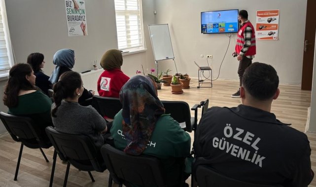 Kızılay Bayburt Şubesi tarafından Yeşilay ve YEDAM çalışanlarına yönelik 'Afet ve İlkyardım' konulu eğitim düzenlendi.Toplumsal Güçlendirme Uzmanı Hasan Türkoğlu tarafından verilen eğitimde deprem, sel, heyelan gibi afetler ele alınarak, afet anında yapılması gerekenler ve temel ilkyardım uygulamaları anlatıldı. Eğitimde, afet sırasında güvenli alanların belirlenmesi, tahliye planlarının hazırlanması, panik durumlarının yönetimi ve iletişim yöntemleri gibi konular detaylı şekilde aktarıldı.Ayrıca yaralanmalarda ilk müdahale, kanama durdurma, boğulma ve suda kurtarma gibi acil durum gerektiren teknikler üzerine durularak, ilkyardım uygulamaları hakkında bilgi verildi.
