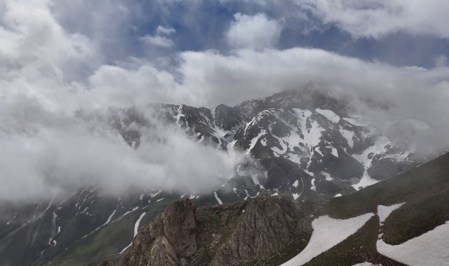 Bayburt'ta dağlar sis bulutlarıyla kaplandı!