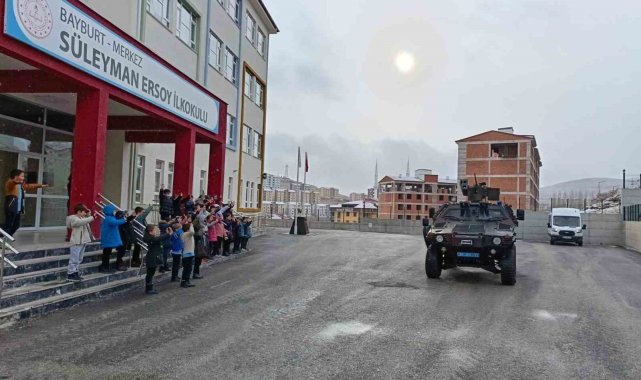 Bayburt İl Jandarma Komutanlığı ekipleri tarafından Tutum, Yatırım ve Türk Malları Haftası kapsamında Süleyman Ersoy İlkokulu öğrencilerine yönelik yerli ve milli teknoloji tanıtım etkinliği düzenlendi.Etkinlikte jandarma personeli, görevlerde kullanılan ve yerli imkanlarla üretilen araç ile ekipmanları öğrencilere tanıttı. Öğrenciler, jandarmanın kullandığı modern araç ve donanımları yakından inceleme fırsatı bulurken, sistemlerin teknik özellikleri hakkında da bilgilendirildi.Yerli ve milli teknolojilerle geliştirilen araçlara yoğun ilgi gösteren öğrenciler, merak ettikleri soruları jandarma personeline yöneltti. Tutum, Yatırım ve Türk Malları Haftası kapsamında gerçekleştirilen etkinliğin, öğrencilerde güvenlik güçlerine yönelik farkındalık oluşturduğu ve yerli üretimin öneminin kavranmasına katkı sağladığı belirtildi. Okul yönetimi ise program dolayısıyla Bayburt İl Jandarma Komutanlığı ekiplerine teşekkür etti.