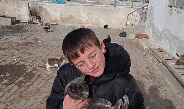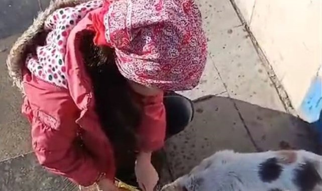 Bayburt'ta köy okulu öğrencileri sokak hayvanlarını besledi