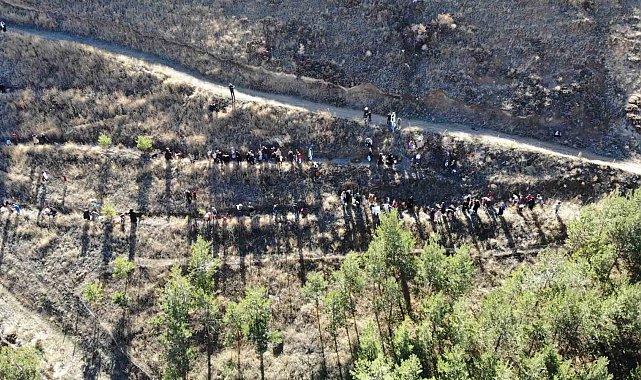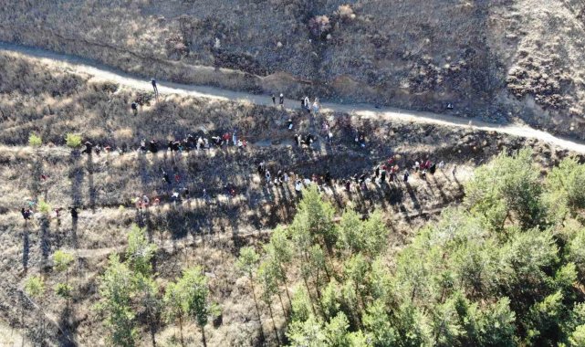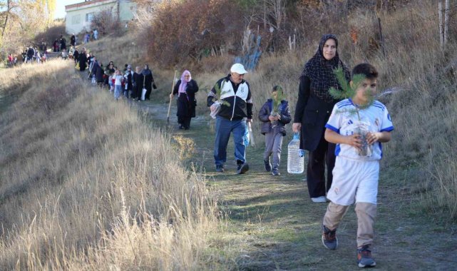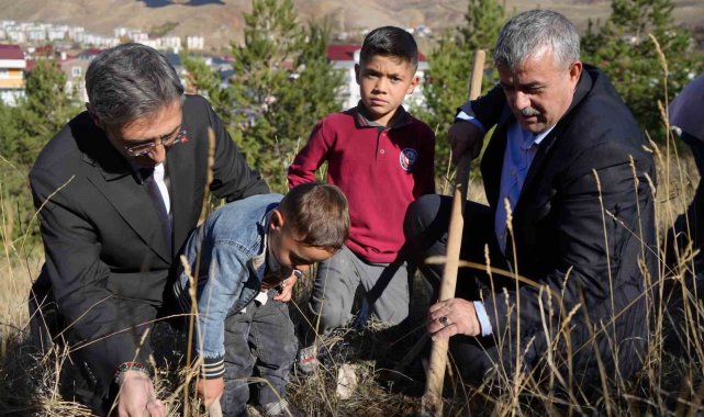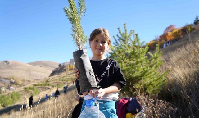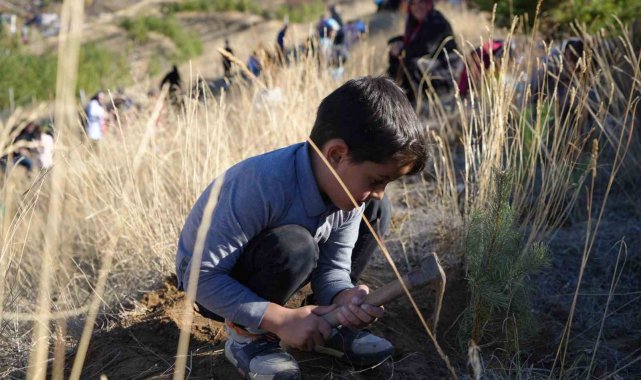 Bayburt'ta 'Benim Okulum, Geleceğe Çare Yeşil Vatan' projesi kapsamında düzenlenen fidan dikim etkinliğinde öğrenciler, öğretmenleri ve aileleriyle birlikte 150 çam fidanını toprakla buluşturdu.