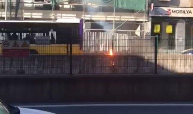 Bayrampaşa'da geri manevra yapan kamyon, tramvay hattının demir korkuluklarına çarptı. Hasar alan korkuluklardan kıvılcımların çıktığı anlar ise güvenlik kamerasına yansıdı.Edinilen bilgiye göre, kaza saat 09.30'da Gaziosmanpaşa ve Bayrampaşa ilçe sınırındaki Topkapı Mescid-i Selam Tramvay hattı Bosna Çukurçeşme Durağı'nda meydana geldi. Sokaktan geri manevra yaparak çıkmak isteyen kamyon, tramvay hattının korkuluklarına çarptı. Çarpmanın etkisiyle tramvay yolundaki demir korkuluklardan kıvılcım ve dumanlar çıktı. Çevredeki vatandaşlar durumu belediye ve itfaiye ekiplerine bildirdi. İhbar üzerine olay yerine gelen ekipler hasar gören korkulukları onarırken, seferlerde herhangi bir aksaklığın olmadığı öğrenildi. Kaza anı ise güvenlik kamerasına yansıdı."Buradaki bütün korkuluklar bir anda alev aldı ve çok büyük bir duman çıktı"Yaşanan kazaya tanık olan Hüseyin Bayrak, "Kamyon galiba hangi araç bilmiyorum, sokak içine dönerken korkuluk demirlerinin yerinden kopmasına sebep oldu. O korkuluk demiri aşağıdaki tramvay hattından çok büyük bir elektrik aldı. Buradaki bütün korkuluklar bir anda alev aldı ve çok büyük bir duman çıktı. Göz gözü görmez de oldu, ciddi bir korku oluştu. Herkes sağa sola kaçtı ama arkadaşlar daha sonra demiri kendi imkanlarıyla yukarı doğru kaldırdılar. Ondan sonra sakinleşti" dedi.