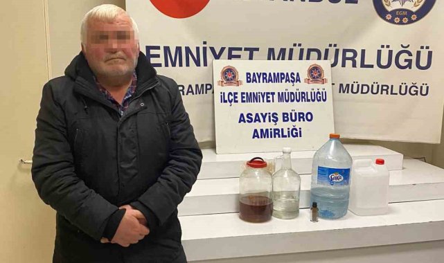 İstanbul Bayrampaşa'da sahte içki üretimi yapıldığı tespit edilen bir imalathaneye polis ekipleri tarafından operasyon düzenlendi. İmalathanede bulunan 7,5 litre sahte içkiye el konulurken, operasyonda gözaltına alınan bir kişi emniyetteki işlemlerinin tamamlanmasının ardından adliyeye sevk edildi.İstanbul İl Emniyet Müdürlüğü ekiplerinin kent genelinde sahte içki denetimleri sürüyor. Bayrampaşa İsmetpaşa Mahallesinde bulunan bir depoda sahte içki imalathanesi olduğu ihbarını alan Bayrampaşa İlçe Emniyet Müdürlüğü Asayiş Şube Müdürlüğü ekipleri harekete geçti. Deponun olduğu bölgede güvenlik önlemlerini alan ekipler depoya operasyon düzenledi. Operasyonda depoyu imalathane olarak kullanıldığı belirlendi. Depo içerisinde beyaz plastik kap içerisinde 1 litre elit alkol, pet şişe içerisinde 3 litre votka, şeffaf cam içerisinde 1,5 litre rakı, cam şişe içerisinde 2 litre viski, 1 adet plastik şişe içerisinde viski aroması ele geçirildi. İmalathanede sahte içki üretimi yaptığı tespit edilen Ali Ç., şüpheli gözaltına alınarak emniyete götürüldü.Şüpheli Ali Ç., emniyetteki işlemlerinin tamamlanmasının ardından adliyeye sevk edildi.Polis ekiplerinin depodaki imalathaneye baskın anı kameraya yansıdı. Görüntülerde sahte içki üretiminde kullanılan malzemelerin olduğu ve üretimi yapılan ve satışa hazır halde bulunan içkilerin olduğu görüldü.