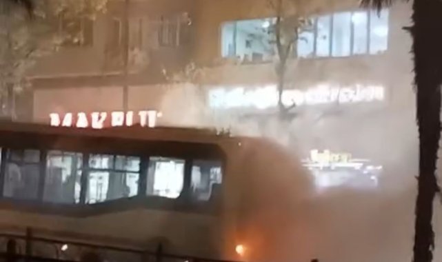 Bursa'da belediye otobüsünün motor kısmındaki arıza panik dolu anlar yaşattı. Dumanların kapladığı araca itfaiye ekiplerince müdahale edildi.Merkez Osmangazi ilçesi Fevzi Çakmak Caddesi üzerinde seyir halindeki bir belediye otobüsünün motor kısmında çıkan arıza nedeniyle araçtan dumanlar çıkmaya başladı. Olayı fark eden otobüs şoförü hemen aracı sağ şeride çekip 112 ekiplerini aradı. İhbar üzerine olay yerine sevk edilen itfaiye ekiplerince dumanlara müdahale edilirken, o anlar kameraya yansıdı.