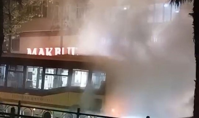 Belediye otobüsü arıza yaptı, çevreyi duman sardı