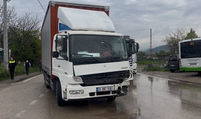 Bursa'da belediye otobüsü ile nakliye kamyonunun çarpıştığı trafik kazasında 2 sürücü yaralandı.Kaza, merkez Osmangazi ilçesi Demirtaş Mahallesi'nde meydana geldi. Edinilen bilgilere göre A.T., idaresindeki belediye otobüsüyle tali yoldan ana yola çıkış yaptığı sırada 'dur' levhasına uymayarak kontrolsüz şekilde kavşağa girdi. Bu esnada ana yol üzerinde seyir halinde olan D.A. yönetimindeki 35 BNT 938 plakalı nakliye kamyonu, yola çıkan otobüse çarptı. Çarpışmanın etkisiyle belediye otobüsü kontrolden çıkarak savruldu ve yol kenarında bulunan boş araziye çıktı. Olayı gören vatandaşların ihbarı üzerine bölgeye polis ve sağlık ekipleri sevk edildi. Kazada, otobüs sürücüsü A.T. ile kamyon sürücüsü D.A. hafif şekilde yaralandı.Öte yandan, kazanın meydana geldiği sırada belediye otobüsünde yolcu bulunmaması muhtemel bir facianın önüne geçti. Polis ekipleri çevrede güvenlik önlemleri alarak trafik akışını kontrollü şekilde sağladı.