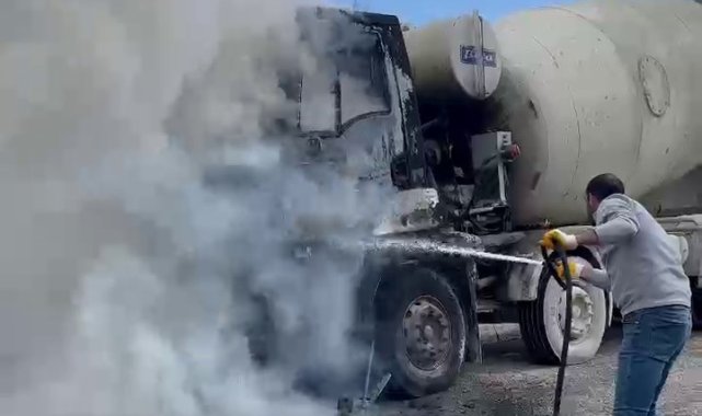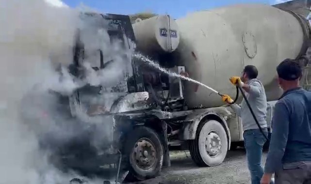 Erzurum'un Aziziye ilçesinde bir beton mikserinin ön tarafı seyir halinde iken alev aldı ve bir anda araç ateş topuna döndü.