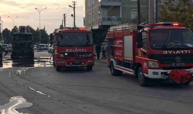 Olay, Gülbahçe Mahallesi 92569 Sokak'ta meydana geldi. Edinilen bilgiye göre, K.S. idaresindeki 42 EKR 14 plakalı beton pompasında elektrik aksamındaki kısa devre nedeniyle yangın çıktı. Kısa sürede büyüyen alevler kabin ve aracın tümünü sararken çevrede paniğe neden oldu. İhbarı üzerine adrese çok sayıda itfaiye ve polis ekibi sevk edildi. İtfaiye ekiplerinin müdahalesiyle yangın kontrol altına alınırken, beton pompası tamamen yanarak kullanılamaz hale geldi. Alevlerin sıçraması sonucu çevrede park halinde bulunan 2 otomobil de zarar gördü.