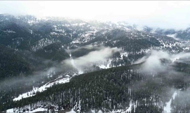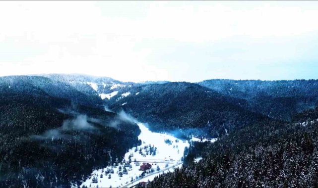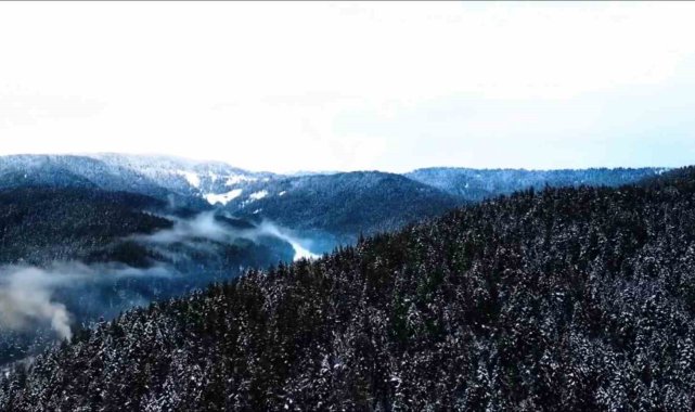 Beyaza bürünen Ilgaz Dağı havadan görüntülendi