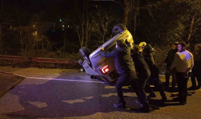 İstanbul Beykoz'da kontrolden çıkarak takla atan otomobildeki 2 kişi yaralandı.
