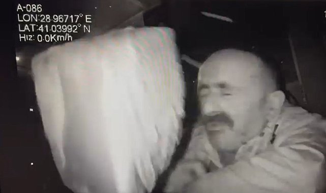 Beyoğlu'nda, bir vatandaş, durakta kavga edip yolculara rahatsızlık verdiği gerekçesiyle kendisini araçtan indiren İETT şoförüne kaldırım taşı fırlatıp başından yaraladı. O anlarsa güvenlik kamerasına yansıdı.Olay, Piyalepaşa Bulvarı üzerindeki durakta meydana geldi. Şüpheli Ali B. (21), durakta bekleyen iki yolcuya hakaret edip üzerlerine yürüdü. Şüpheliden uzaklaşmaya çalışan yolcular İETT obüsüne bindi. Peşlerinden otobüste binen Ali B, yolculara saldırdı. Şoförün de yardımıyla araçtan indirilen saldırgan otobüsün önüne geçip sileceklerini kırdı.Otobüs şoförü Mustafa Gemici'nin (53) polisi aradığı sırada saldırgan yerden aldığı taşı otobüsün kapısına fırlattı. Kaldırım taşı, kapının camını kırıp şoförün başına isabet etti. Saldırgan olay yerinden uzaklaşırken, bölgeye polis ve sağlık ekipleri sevk edildi. Sağlık ekipleri ilk müdahalenin ardından yaralanan şoförü ambulansla hastaneye kaldırdı.Yakalanan saldırganın 52 suç kaydı olduğu ortaya çıktı.Polis ekipleri kamera kayıtlarını inceleyip saldırganın kimliği tespit etti. Hızla harekete geçen ekipler, 12 saat gibi kısa bir sürede şüpheli Ali B'yi saklandığı adreste yakaladı. Gözaltına alınan Ali B'nin 52 suç kaydının bulunduğu ortaya çıktı. Emniyetteki işlemlerin ardından adliyeye sevk edilen şüpheli, çıkarıldığı nöbetçi sulh ceza hakimliği tarafından tutuklandı.