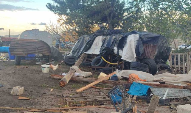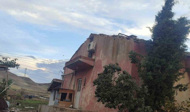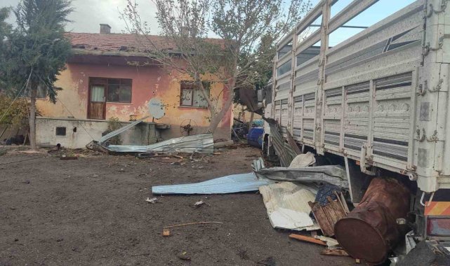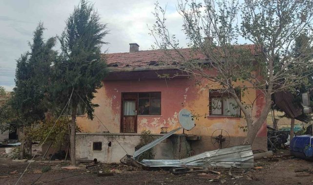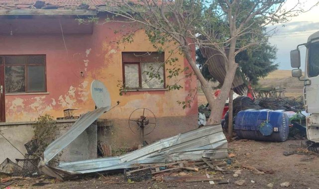 Ankara'nın Beypazarı ilçesinde fırtınanın etkisiyle evlerin çatısı uçtu.