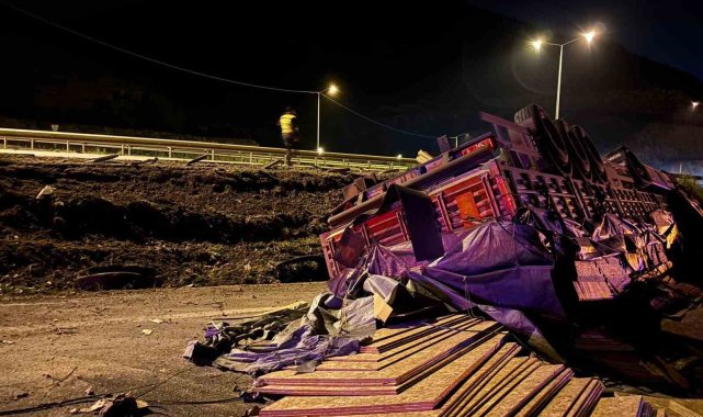 Bilecik'te meydana gelen kazada kontrolden çıkarak devrilen tırın sürücüsü yaralandı.Kaza, dün gece, Vezirhan Beldesi girişi bağlantı yolu mevkiinde meydana geldi. Edinilen bilgilere göre Bilecik'ten Sakarya yönüne seyreden 43 KY 775 plakalı sunta yüklü tır sürücüsü Coşkun Ö. bir anda aracın direksiyon hakimiyetini kaybetti. Kontrolden çıkan tır devrilirken, dorsesindeki suntalar yola saçıldı. Meydana gelen trafik kazasında araç sürücüsü Coşkun Ö. yaralandı. Yaralı olay yerine gelen acil servis ekiplerince yapılan ilk müdahalenin ardından Bilecik Eğitim ve Araştırma Hastanesine kaldırıldı.Kaza nedeniyle kapanan Bilecik-Sakarya-İstanbul kara yolu aracın kaldırılmasıyla yeniden ulaşıma açıldı.Kazayla ilgili jandarma inceleme başlattı.