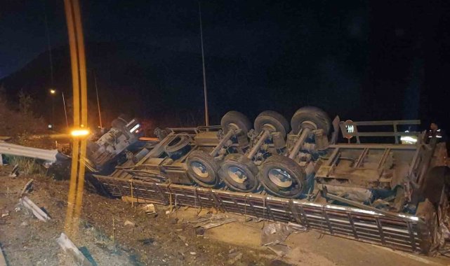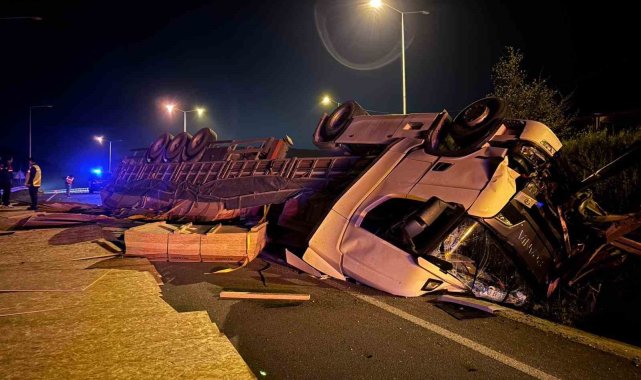 Bilecik'te devrilen tırın sürücüsü yaralandı