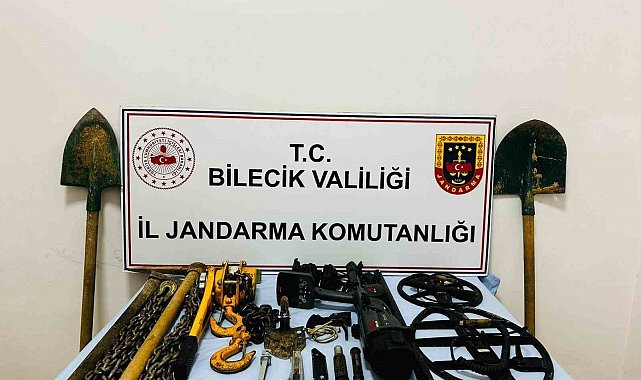 Bilecik'in Osmaneli ilçesi Belenalan köyü sınırları içerisinde bulunan ormanlık alanda kaçak kazı yapıldığı ihbarı üzerine jandarma ekipleri harekete geçti. Bölgeye intikal eden ekipler, Kom Şube Müdürlüğü ekipleriyle birlikte gerçekleştirdikleri ortak operasyonla 5 kişiyi suçüstü yakaladı. Operasyonda A.Y., E.İ., M.Ç., H.M. ve B.F. isimli şüpheliler zor kullanılmadan gözaltına alındı. Olay yerinde yapılan aramada 2 kürek, 1 kazma, 2 balta, 1 calaskal, 3 parça halinde toplam 5 metre uzunluğunda zincir çeki halatı, 1 el dedektörü, 2 dedektör ucu, 1 dedektör kulaklığı, 1 batarya, 1 maket bıçağı, 1 bilgisayar bağlantı kablosu, 1 el küreği, 1 testereli bıçak, 1 kamp baltası ve 1 çakmaklık şarj aleti ele geçirildi.