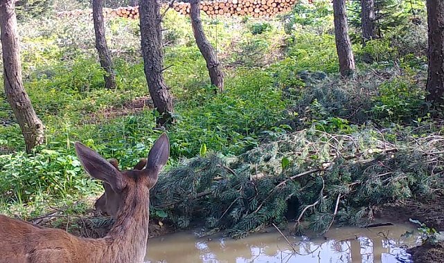 Doğa Koruma ve Milli Parklar (DKMP) 2. Bölge Müdürlüğü sosyal medya hesabından fotokapanla çekilen kızılgeyik görüntüsünü paylaştı.Bilecik'in Bozüyük ilçesine bağlı Çamlıyayla Köyü yakınlarında DKMP tarafından kurulan fotokapan objektifine giren kızılgeyik su içerken kaydedildi. Fotokapan ile kaydedilen görüntüde, etrafını bir süre kontrol eden kızılgeyik, yağmur sonrası oluşan su birikintisinden su içtiği görülüyor.