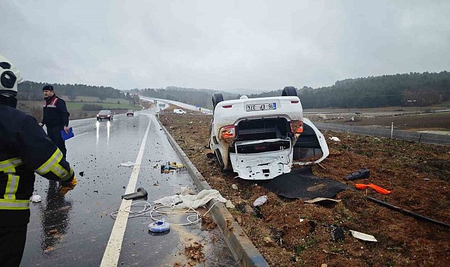 Bilecik'te seyir halinde kontrolden çıkan otomobil takla atarak durabilirken, meydana gelen trafik kazasında sürücüsü yaralandı.Alınan bilgilere göre; Bilecik-Yenişehir-Bursa kara yolunda seyir halindeki 16 EP 374 plakalı otomobil sürücüsü Mert Muhammet Ş., Kepirler Köyü mevkiine geldiğinde aracın direksiyon hakimiyetini kaybetti. Kontrolden çıkan araç orta refüje çarparak, takla artarak devrildi. Meydana gelen trafik kazasında araç sürücü yaralanırken, yaralı olay yerine gelen 112 Acil Servis ekiplerince yapılan ilk müdahalenin ardından Bilecik Eğitim ve Araştırma Hastanesine kaldırıldı.Jandarma kazayla ilgili inceleme başlattı.
