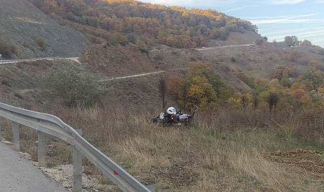 Bilecik'te seyir halinde kontrolden çıkan motosiklet şarampole uçarken, sürücüsü yaralandı.