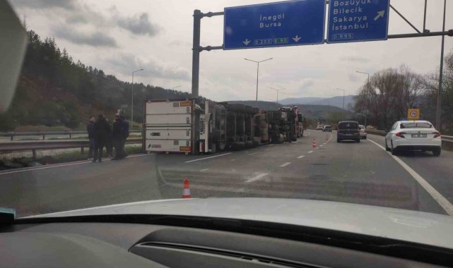 Bilecik'in Bozüyük ilçesinde kontrolden çıkan tır devrildi.