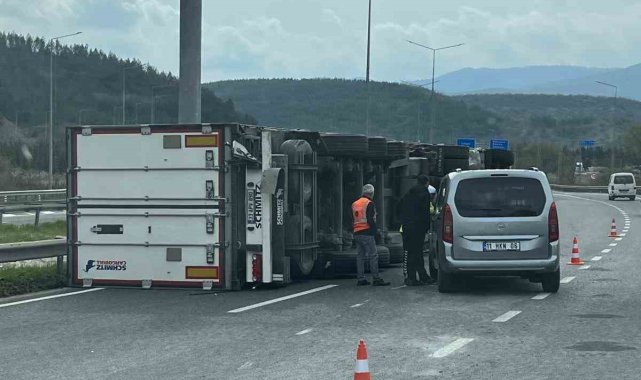 Bilecik'in Bozüyük ilçesinde kontrolden çıkan tır devrildi.Kaza, Bilecik Bozüyük çevre yolunda meydana geldi. Edinilen bilgilere göre, Bursa İnegöl istikametinde, halinde bulunan tır, sürücüsünün bir anlık direksiyon hakimiyetini kaybetmesi sonucu kontrolden çıkarak devrildi. İhbar üzerine olay yerine polis ekipleri sevk edilirken, bölgede güvenlik önlemleri alındı. Devrilen tır, olay yerine çağrılan üç vinç yardımıyla bulunduğu yerden kaldırıldı. Öte yandan, kaza nedeniyle bölgede trafik bir süre aksarken, çalışmaların tamamlanmasının ardından ulaşım normale döndü.Polis ekipleri kazayla ilgili inceleme başlatıldı.