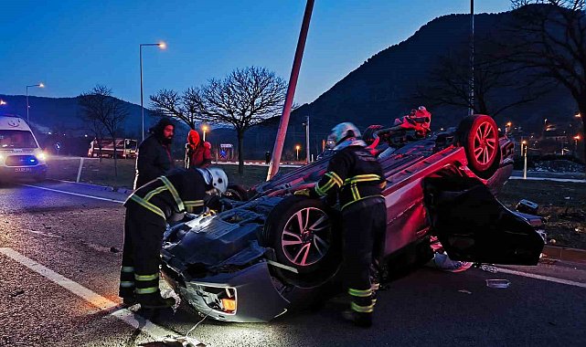 Bilecik'te seyir halinde tıra çarpan otomobil takla atarak durabilirken, sürücüsü yaralandı.