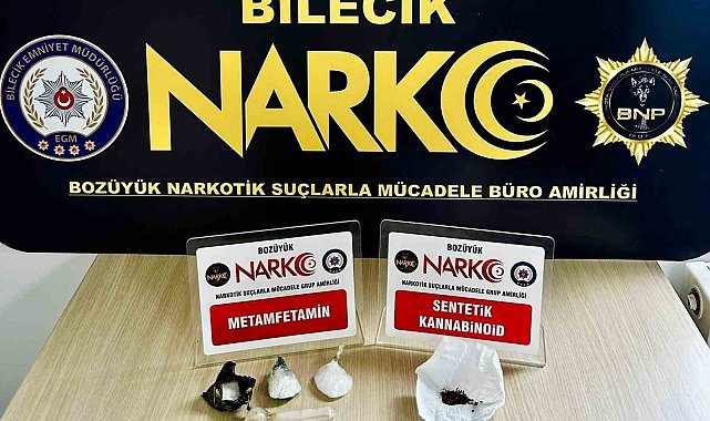 Bilecik'te şehirler arası otobüs ile yolculuk yapan şahıs Bozüyük'te faaliyet gösteren dinlenme tesislerinde üzerinde uyuşturucu madde ile yakalandı.Alınan bilgililere göre Bilecik İl Emniyet Müdürlüğü'ne bağlı NARKO şube ihbar üzerine Bilecik'te şehirler arası otobüs ile seyahat eden şüpheli şahsı Bozüyük'te faaliyet gösteren dinlenme tesislerinde üzerinde uyuşturucu madde ile yakalandı. Şahsın üzerinden 23,63 gram (Metamfetamin) maddesi, 1,60 gram Sentetik kannabinoid (Bonzai) maddesi, 1 adet uyuşturucu madde kullanmaya yarayan cam aparat (Bong) ele geçirildi.Ayrıca şüpheli şahıs hakkında 'Uyuşturucu veya uyarıcı madde ihmal ve ticareti' ve 'Kullanmak için uyuşturucu veya uyarıcı madde satın almak, kabul etmek veya bulundurmak' suçları kapsamında gözaltına alınarak yasal işlem başlatıldığı öğrenildi.