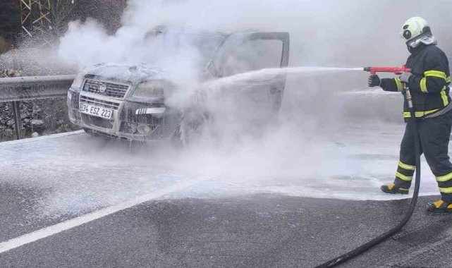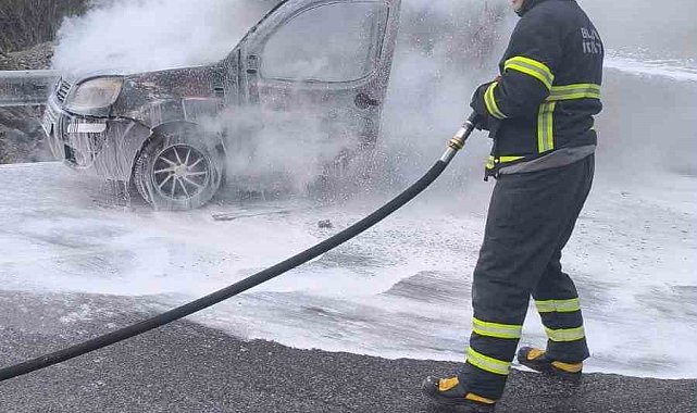 Bilecik'te seyir halinde bir anda alev alan hafifi ticari araçta hasar meydana geldi.