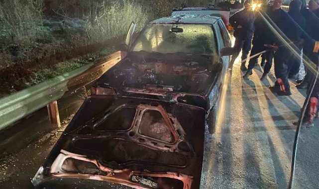Bilecik'te seyir halindeyken aniden alev alan otomobilde çıkan yangın itfaiye ekiplerince söndürüldü.