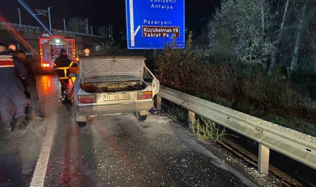 Bilecik'te seyir halindeyken aniden alev alan otomobilde çıkan yangın itfaiye ekiplerince söndürüldü.Olay, Pazaryeri ilçesine bağlı Demirköy köyü mevkiinde yaşandı. Edinilen bilgilere göre, Bilecik-Bozüyük istikametinde seyir halinde olan İsmail K. (69) idaresindeki 11 AK 992 plakalı otomobil, elektrik arızası nedeniyle motor kısmından aniden alev aldı. Yangının büyüdüğünü fark eden sürücü, aracı yolun kenarına çekti ve dışarıya çıktı. İhbar üzerine olay yerine jandarma ve itfaiye ekipleri sevk edildi. İtfaiye ekiplerinin müdahalesiyle yangın söndürülürken, otomobil kullanılamaz hale geldi.