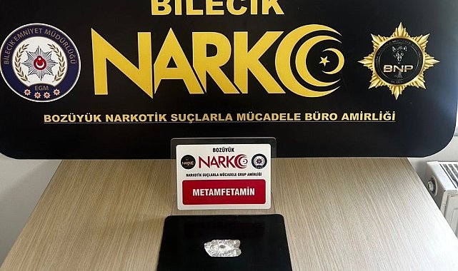 Bilecik'te polis ekiplerinin şüphelendikleri şahsın üzerinde yaptıkları aramada uyuşturucu madde ele geçirildi.Bilecik'in Bozüyük ilçesinde Narkotik Suçlarla Mücadele Şube Müdürlüğü bağlı ekipleri yaptıkları bir denetimde bir şahısın şüpheli hareketleri sonrası üzerinde arama yapıldı. Şahsın üzerinden 1 gram metamfetamin maddesi ele geçirilirken, hakkında 'TCK 191- kullanmak için uyuşturucu veya uyarıcı madde satın almak, kabul etmek veya bulundurmak' suçu niteliğinde yasal işlem başlatıldığı öğrenildi.