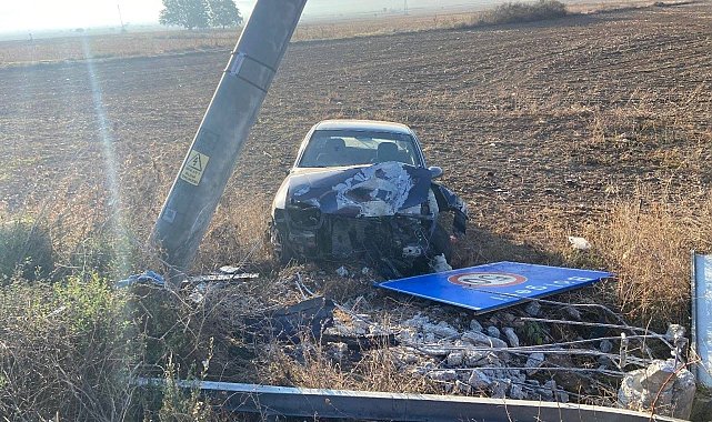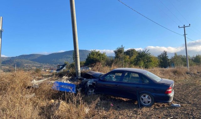 Bilecik'te tarlaya uçan araç hem elektrik direğine hem de hız sınırı tabelasına çarparak durabildi