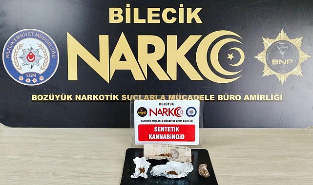 Bilecik'te polis ekiplerince düzenlenen uyuşturucu operasyonunda 2 kişi gözaltına alındı.Edinilen bilgilere göre, Bilecik İl Emniyet Müdürlüğü Narkotik Suçlarla Mücadele Şube Müdürlüğü ekiplerince yürütülen çalışmalar kapsamında gerçekleştirilen operasyonda, muhtelif miktarda sentetik kannabinoid maddesi ele geçirildi. Operasyonda 2 şüpheli şahıs yakalanarak gözaltına alınırken, haklarında 'Uyuşturucu madde kullanmak, bulundurmak ve ticareti' suçlarından adli işlem başlatıldı.