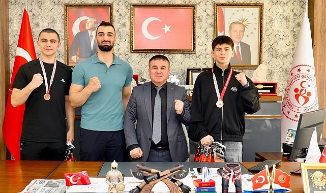Bilecikli boks sporcuları Türkiye derecesi elde etti.Diyarbakır'da düzenlenen Okul Spor Faaliyetleri Gençler A-B Türkiye Şampiyonası'nda Bilecikli boks sporcuları önemli başarılara imza attı. Gençler A kategorisi 81 kilogramda mücadele eden Doruk Yılmaz Türkiye üçüncüsü olurken, 48 kilogramda ringe çıkan Yasin Halit ise Türkiye şampiyonu oldu. Elde ettikleri derecelerle kentin gururu olan sporcular, antrenörleri Burak Buğday ile birlikte Bilecik Gençlik ve Spor İl Müdürü Ramazan Demir'i makamında ziyaret etti.Ziyarette sporcularla yakından ilgilenen İl Müdürü Demir, "Sporcularımız Doruk Yılmaz ve Yasin Halit'i ile antrenörümüz Burak Buğday'ı tebrik ediyor, başarılarının devamını diliyorum" dedi.