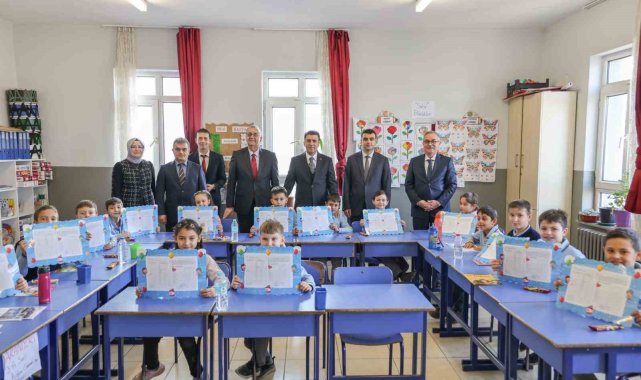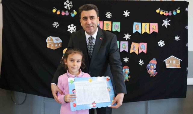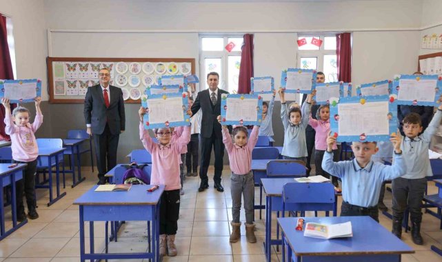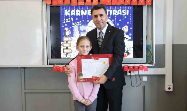 Bilecik'in Osmaneli ilçesinde minik öğrenciler ilk karne heyecanı yaşarken, karnelerini valinin elinden aldı.