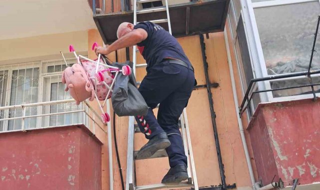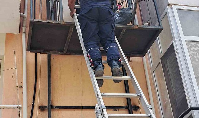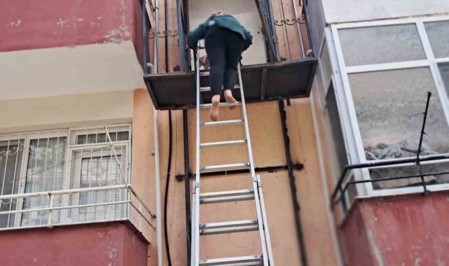 Binanın dışındaki asansörde mahsur kalan anne ve çocuğu itfaiye kurtardı