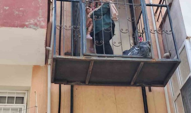 Hatay'ın Samandağ ilçesinde bir binanın dış cephesindeki asansörde mahsur kalan anne ve kız çocuğunu itfaiye ekipleri kurtardı.