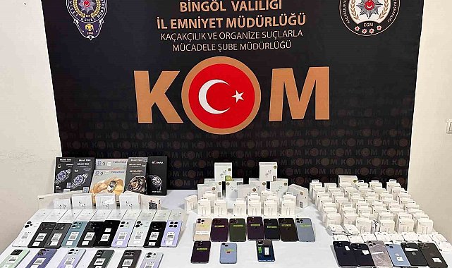 Bingöl'de polis ekipleri tarafından yapılan çalışmada 34 adet telefon ve çok sayıda aksesuar ele geçirildi.Bingöl Valiliği'nde yapılan açıklamada, "Bingöl Kaçakçılık ve Organize Suçlarla Mücadele Şube Müdürlüğü ekiplerinin yapmış olduğu çalışmalar neticesinde; 15 adet iPhone marka akıllı cep telefonu, 6 adet kayıt dışı Android akıllı cep telefonu, 13 adet klonlanmış Android akıllı cep telefonu, 24 adet kablosuz kulaklık, 10 adet farklı markalarda akıllı saat, 20 adet kablolu kulaklık, 65 adet USB-C şarj kablosu, 1 adet ruhsatsız kuru sıkı tabanca, 1 adet ruhsatsız av tüfeği ele geçirilmiştir. Şüpheli şahsın 5607 SKM kapsamında ifadesi alınıp adli işlem başlatılmıştır" denildi.